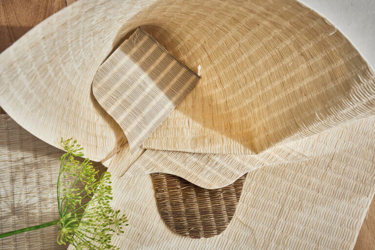 Autour du chanvre et de l’abaca se tisse une nouvelle histoire, faite de lumière et d’une beauté pure. Magnifiées par des tissages d’une dextérité rare, parfois nimbés d’éclats métallisés ou mêlés de crin de soie, les fibres se parent d’une énergie japonisante, évocatrice de précieux tatamis aux teintes naturelles, tabac et du raffinement des matières silencieuses.