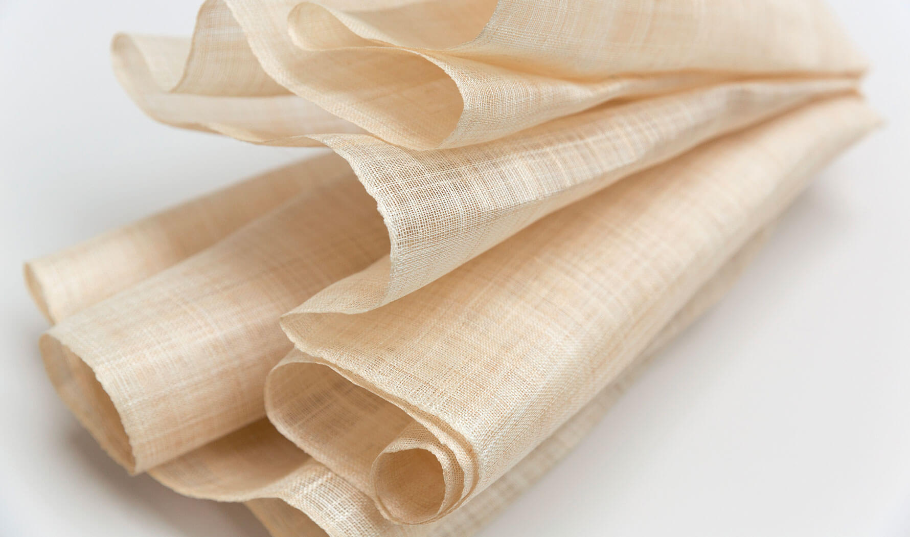 L’abaca, ou « chanvre de Manille », est l’une des fibres les plus résistantes en textile. Extraite au cœur du tronc de la plante des bananiers de l’Équateur ou des Philippines (Musa textilis), elle est utilisée dans la mode haute couture et la décoration intérieure. Elle permet la création de couleurs riches et raffinées tout en apportant une légère transparence. La fibre ayant été obtenue par un procédé écologique qui est le rouissage de la plante, le fil est garanti 100 % végétal. Le savoir-faire du traitement de la fibre offre une grande créativité pour la réalisation de stores, de parois japonaises ou de revêtements muraux.